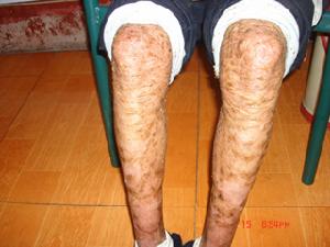皮损往往为全身对称性,以发生于身体屈侧部位的较重。